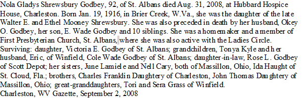 Notes for NOLA GLADYS SHREWSBURY GODBEY: