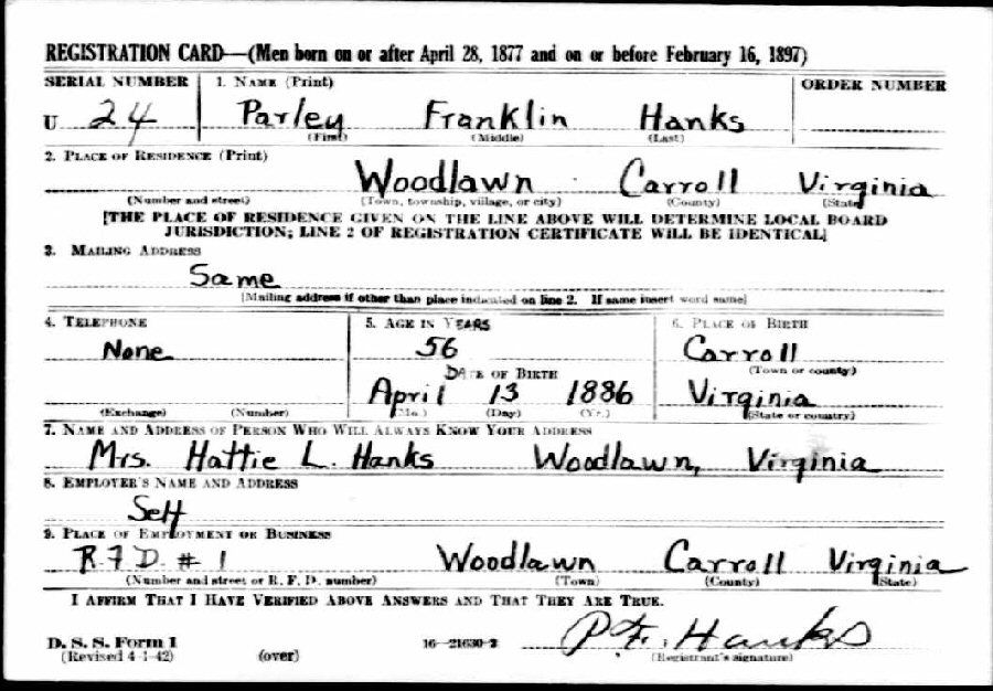 Notes for PARLEY FRANKLIN HANKS, SR: