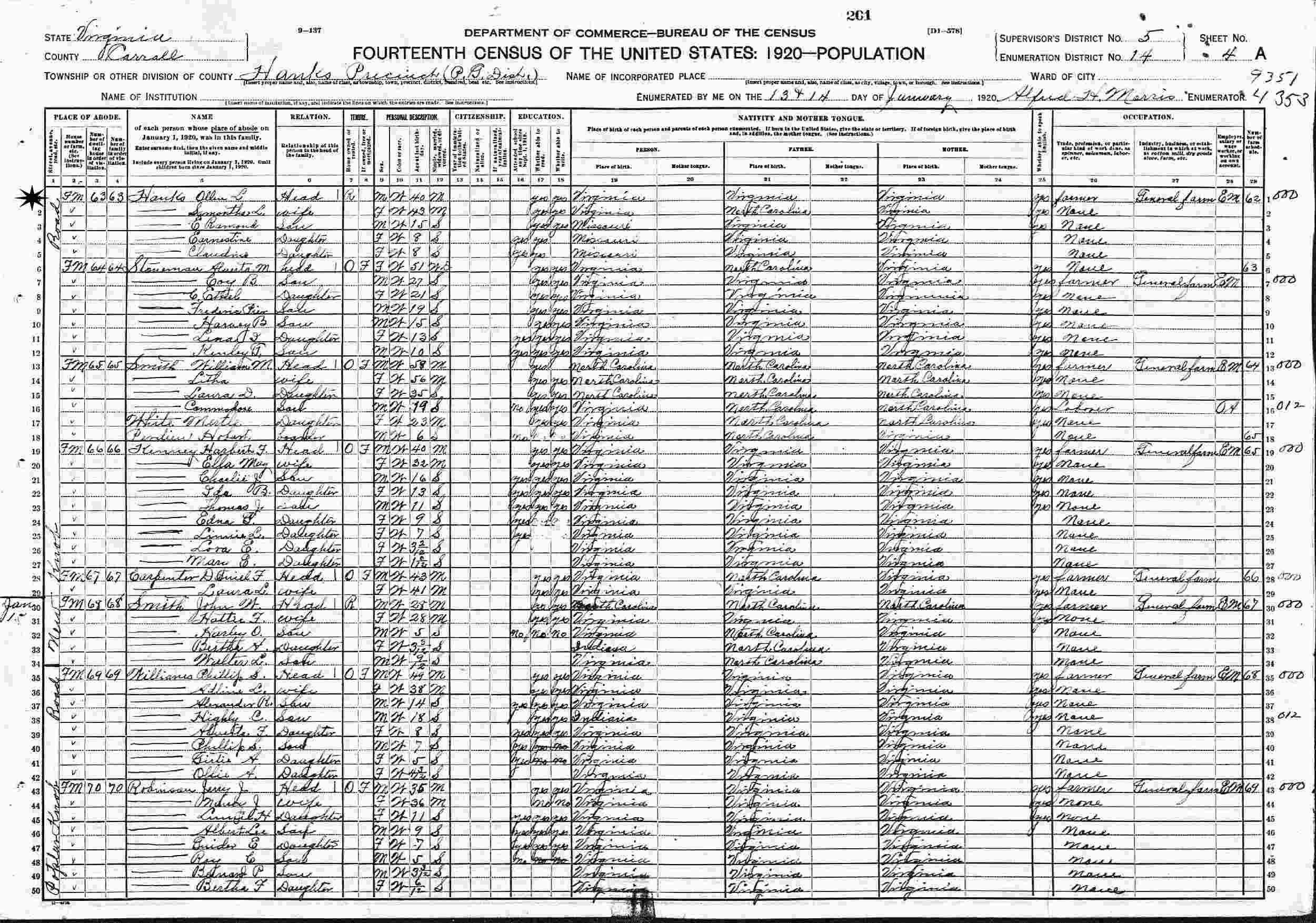 January 13-14, 1920 - Knob Road, Supervisor's District 5, Enumeration District 14, Hanks Precinct, Carroll County, Virginia.