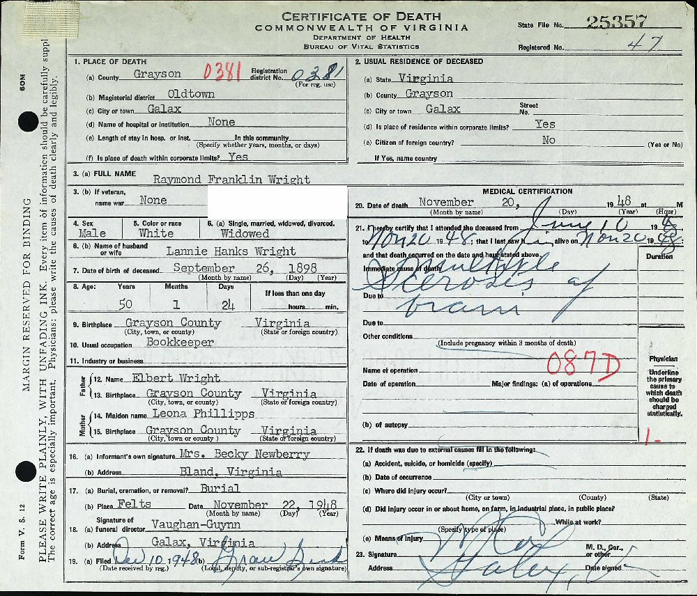 Died: November 10, 1948 in Galax, Virginia.