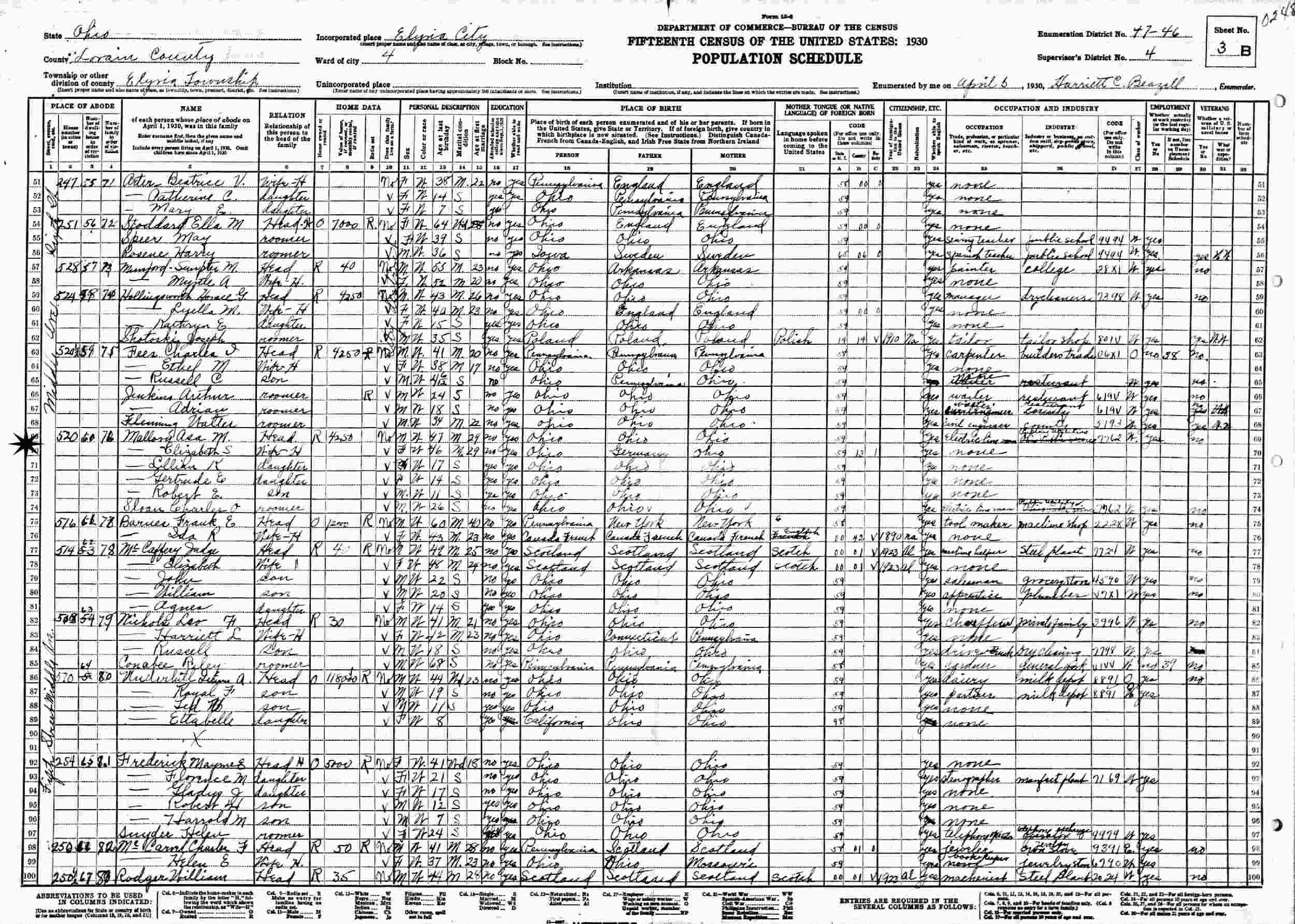 April 5, 1930 - 520 Middle Avenue, Supervisor's District 4, Enumeration District 47-46, Elyria Township, Lorain County, Ohio.