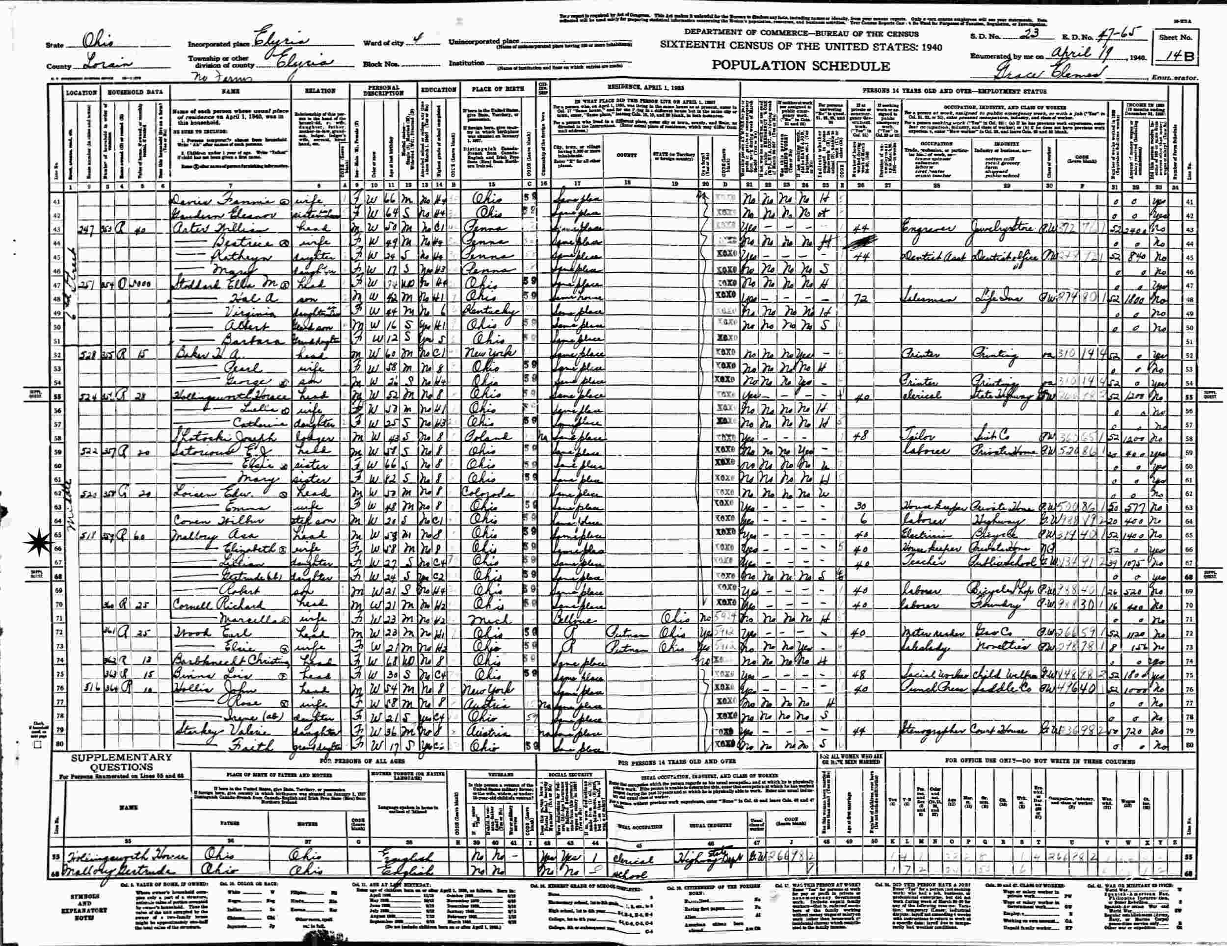April 19, 1940 - 418 Middle, Supervisor's District 23, Enumeration District 47-65, Elyria, Lorain County, Ohio.