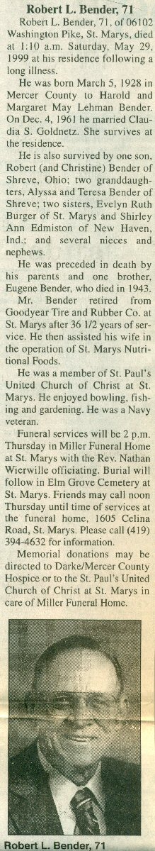 Son of Harold Roman and Margaret May (Lehman) Bender.
