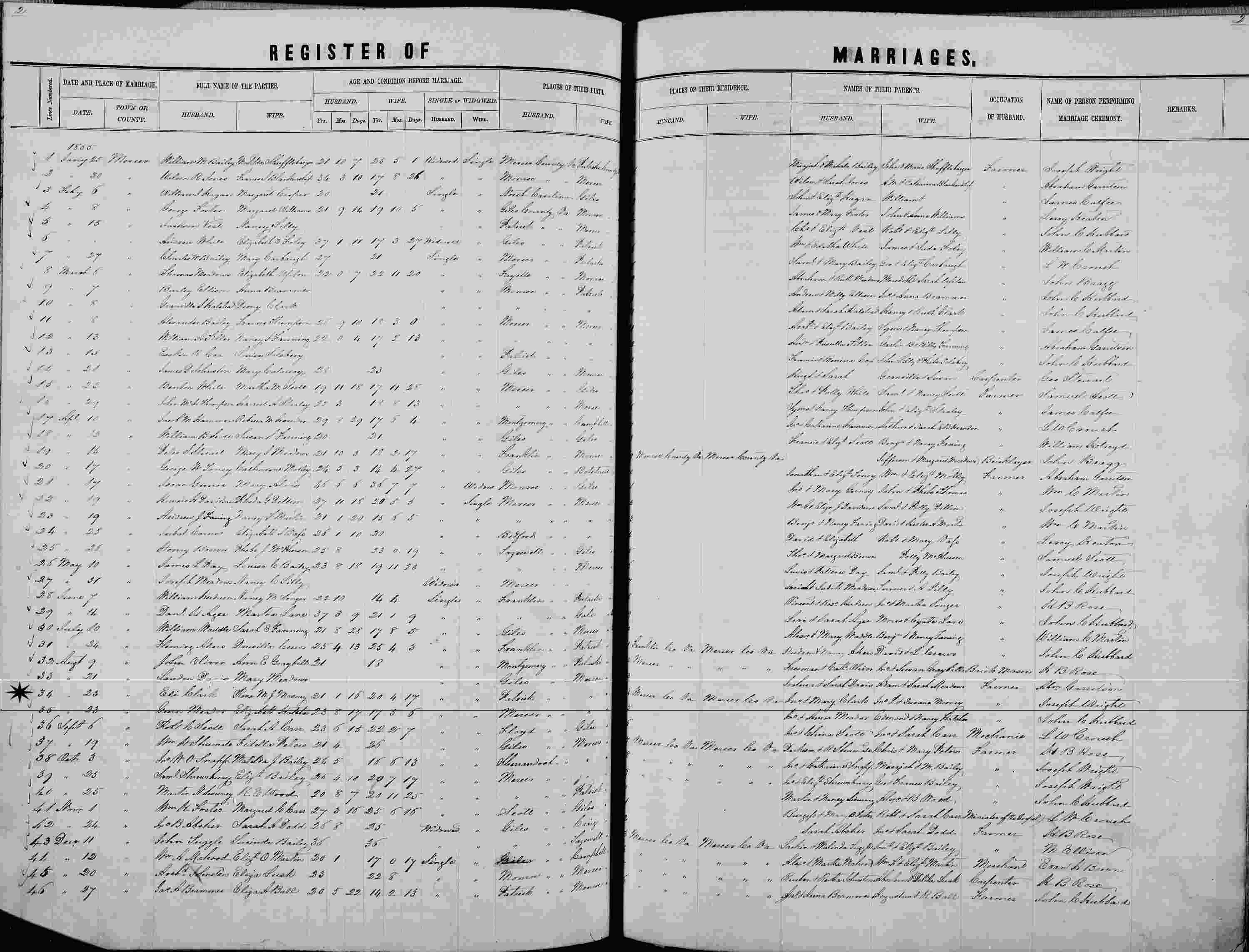 Married: Eli Clark August 23, 1855 in Mercer County, West Virginia.