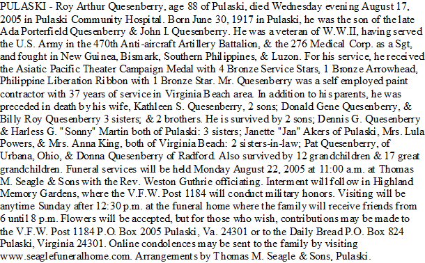 Died: August 17, 2005 in Pulaski County, Virginia.