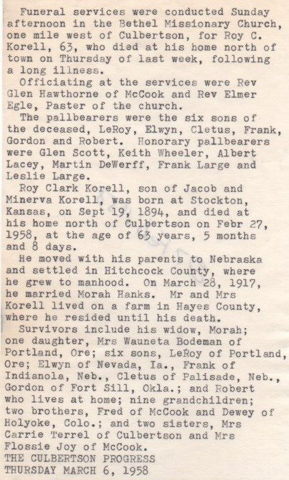 Buried: Culbertson Cemetery, Culbertson, Hitchcock County, Nebraska.