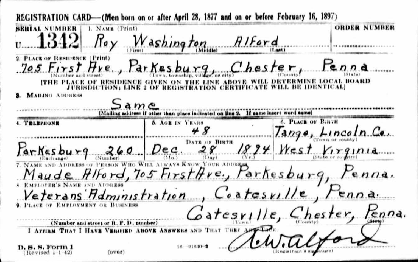 April 27, 1942 - 705 First Avenue, Parkesburg, Chester County, Pennsylvania.