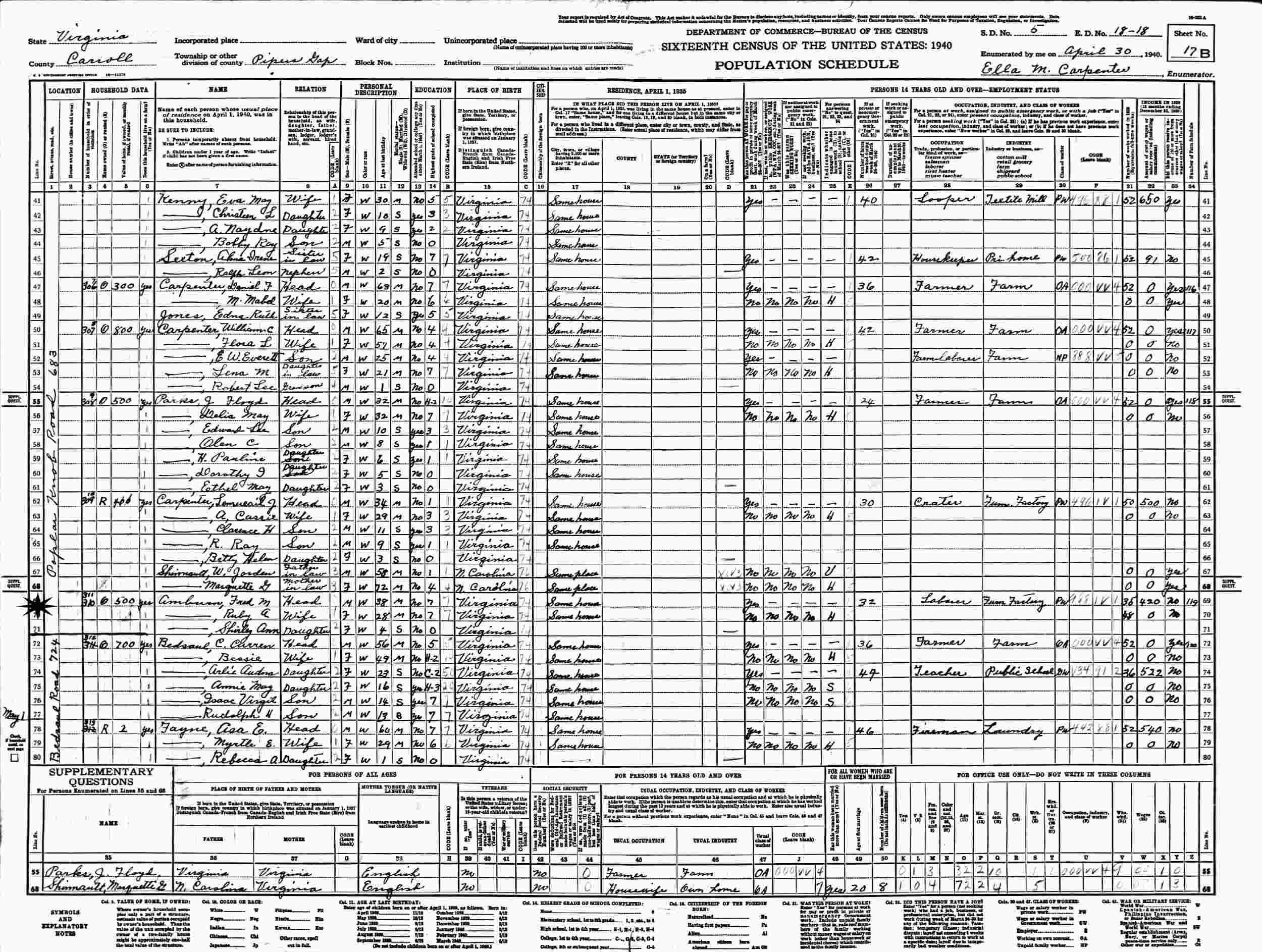 Born: March 24, 1936 in Carroll County, Virginia.