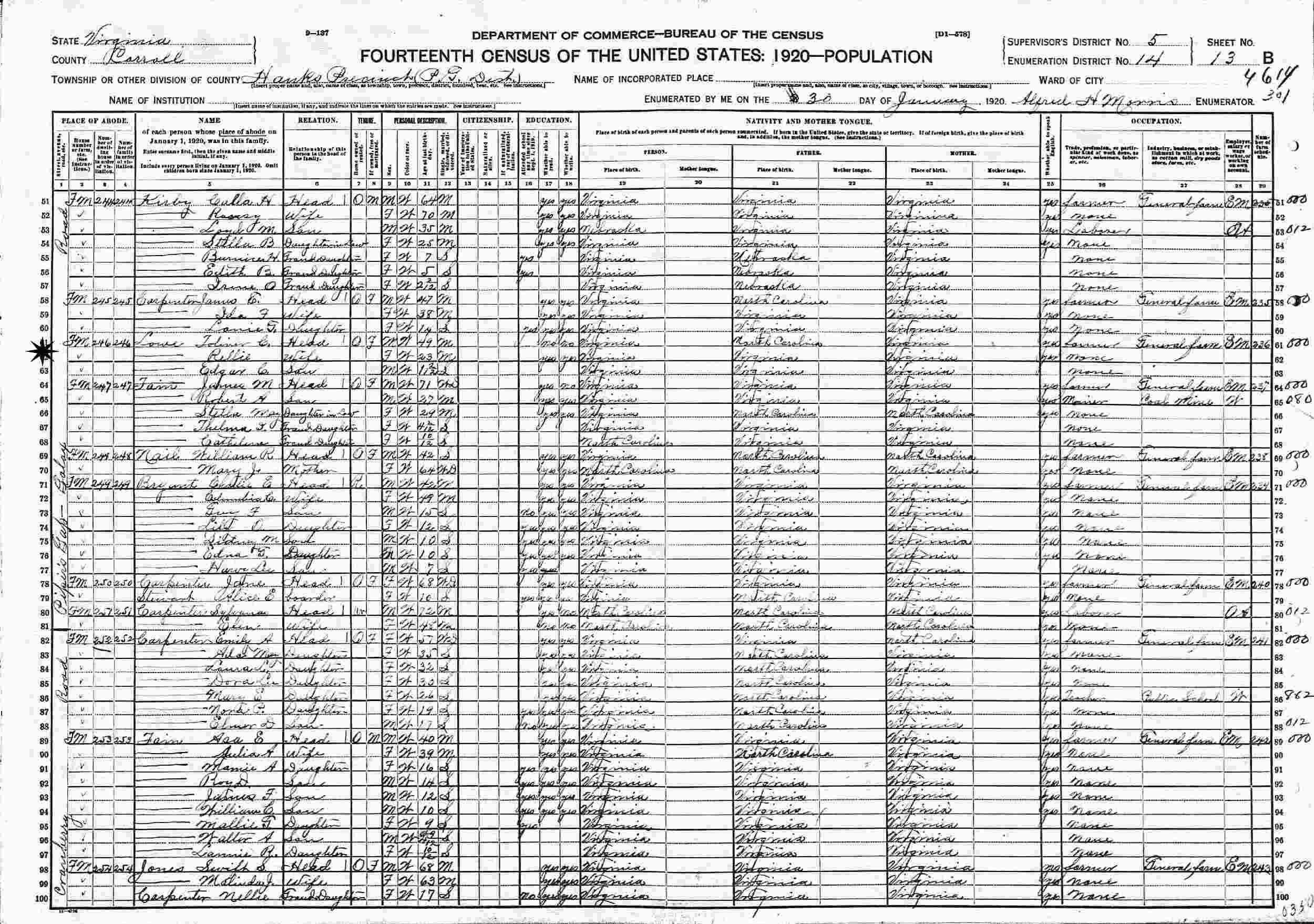 January 30, 1920 - Pipers Gap-Galax Road, Hanks Precinct, Supervisor's District 5, Enumeration District 14, Pipers Gap District, Carroll County, Virginia.