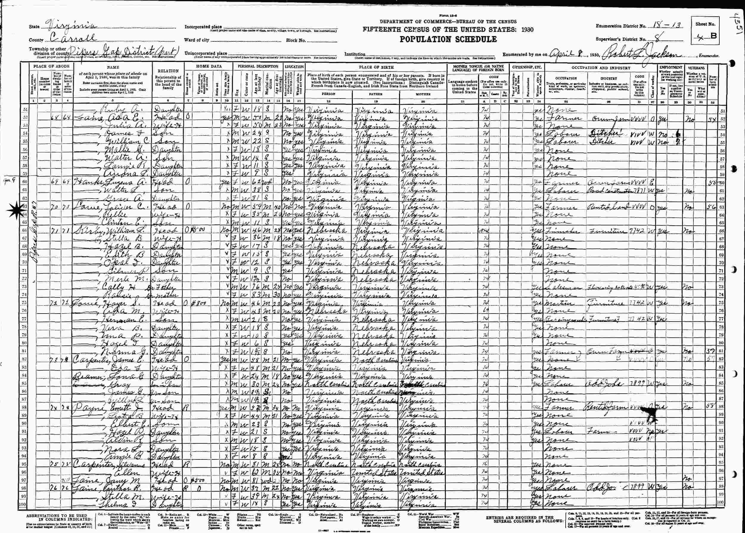 April 8, 1930 - Pipers Gap Road #7, Supervisor's District 18-13, Enumeration District 8, Pipers Gap District, Carroll County, Virginia.