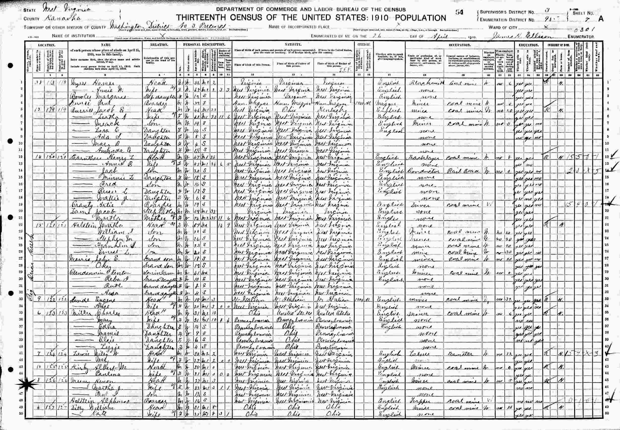 April 26, 1910 - 8 Big Brice Creek, Precinct #3, Supervisor's District 3, Enumeration District 95, Washington District, Kanawha County, West Virginia.