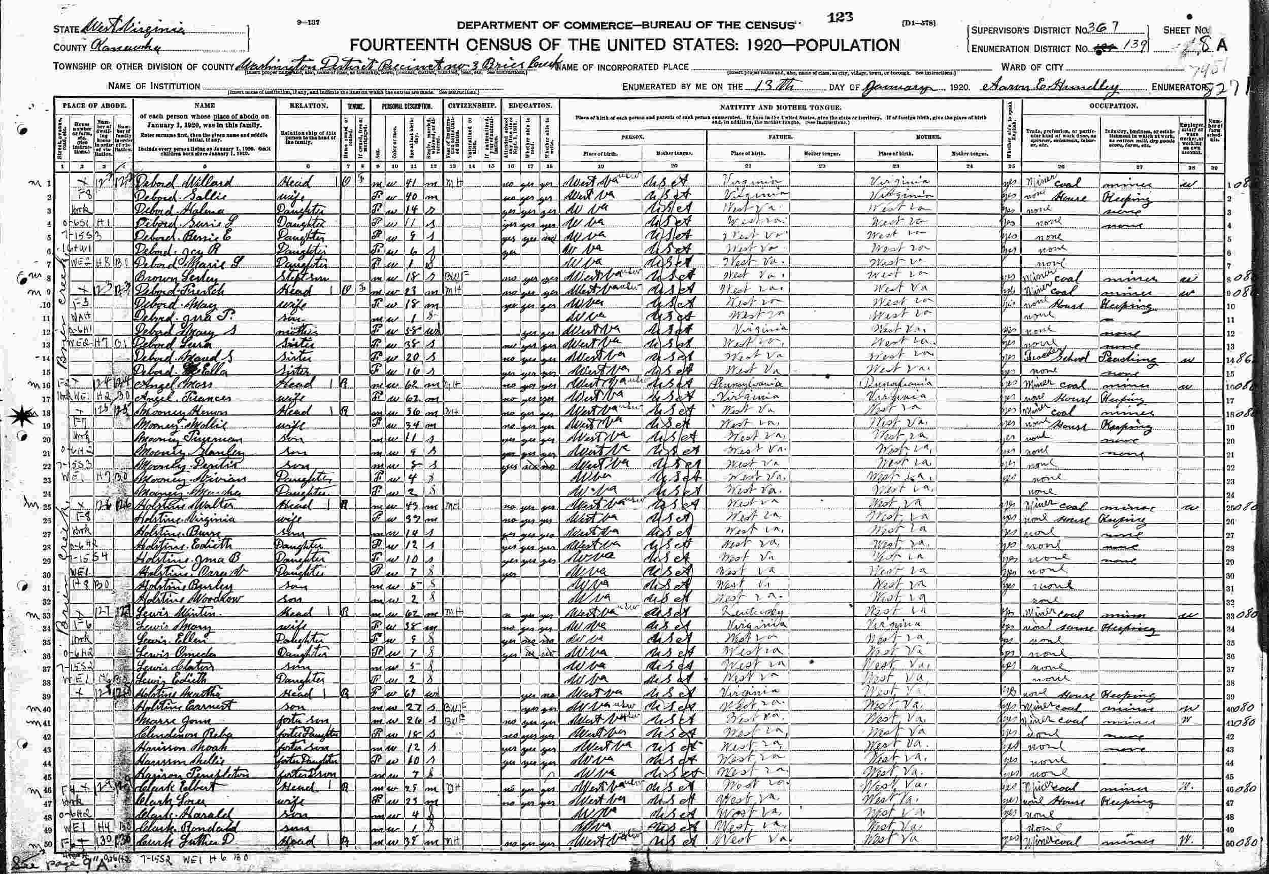 January 13, 1920 - Precinct 3, Supervisor's District 367, Euneration District 139, Brier Creek, Washington District, Kanawha County, West Virginia.