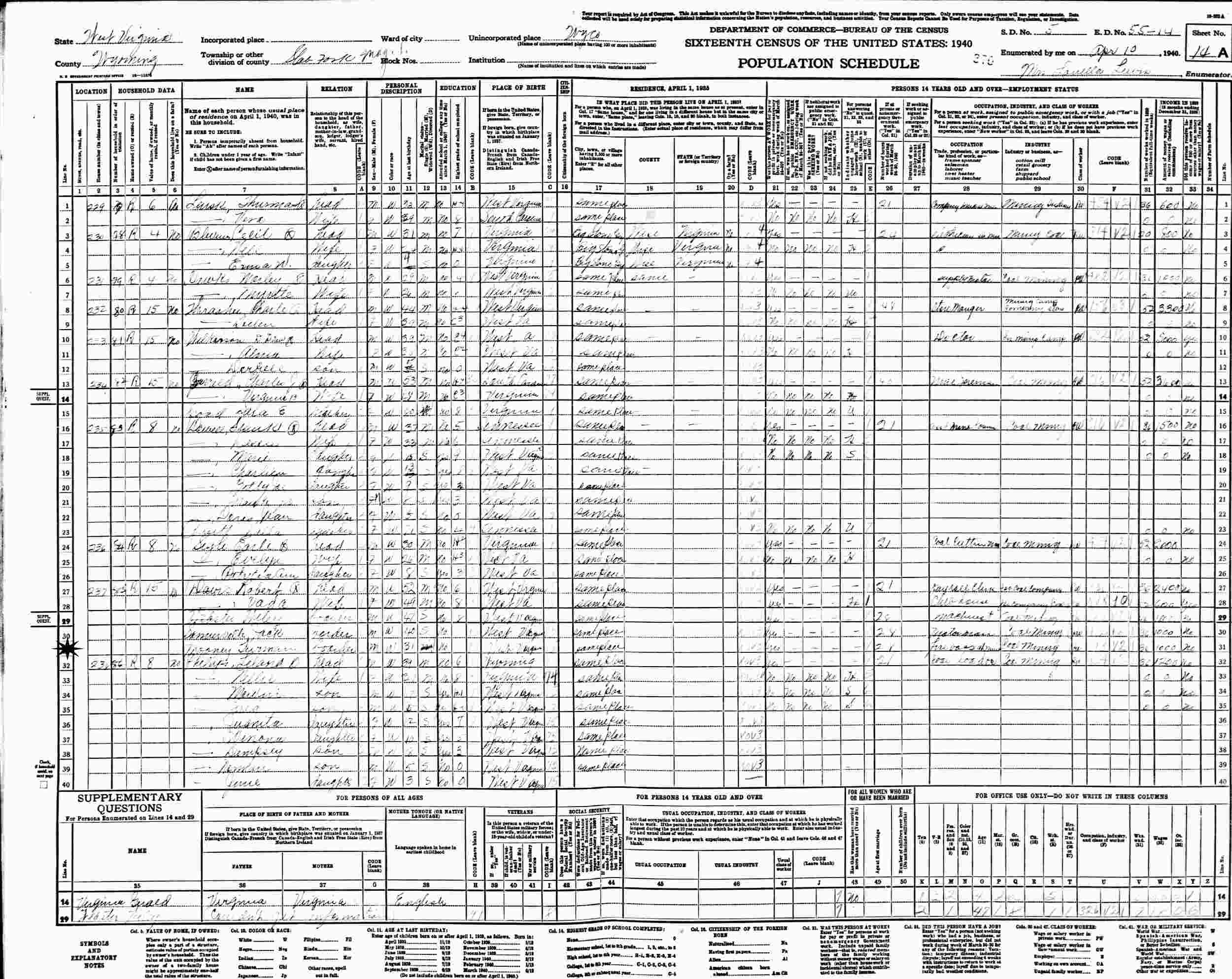 April 10, 1940 - Supervisor's District 5, Enumeration District 55-14, Slab Fork Magisterial District, Wyco, Wyoming County, West Virginia (Boarder).