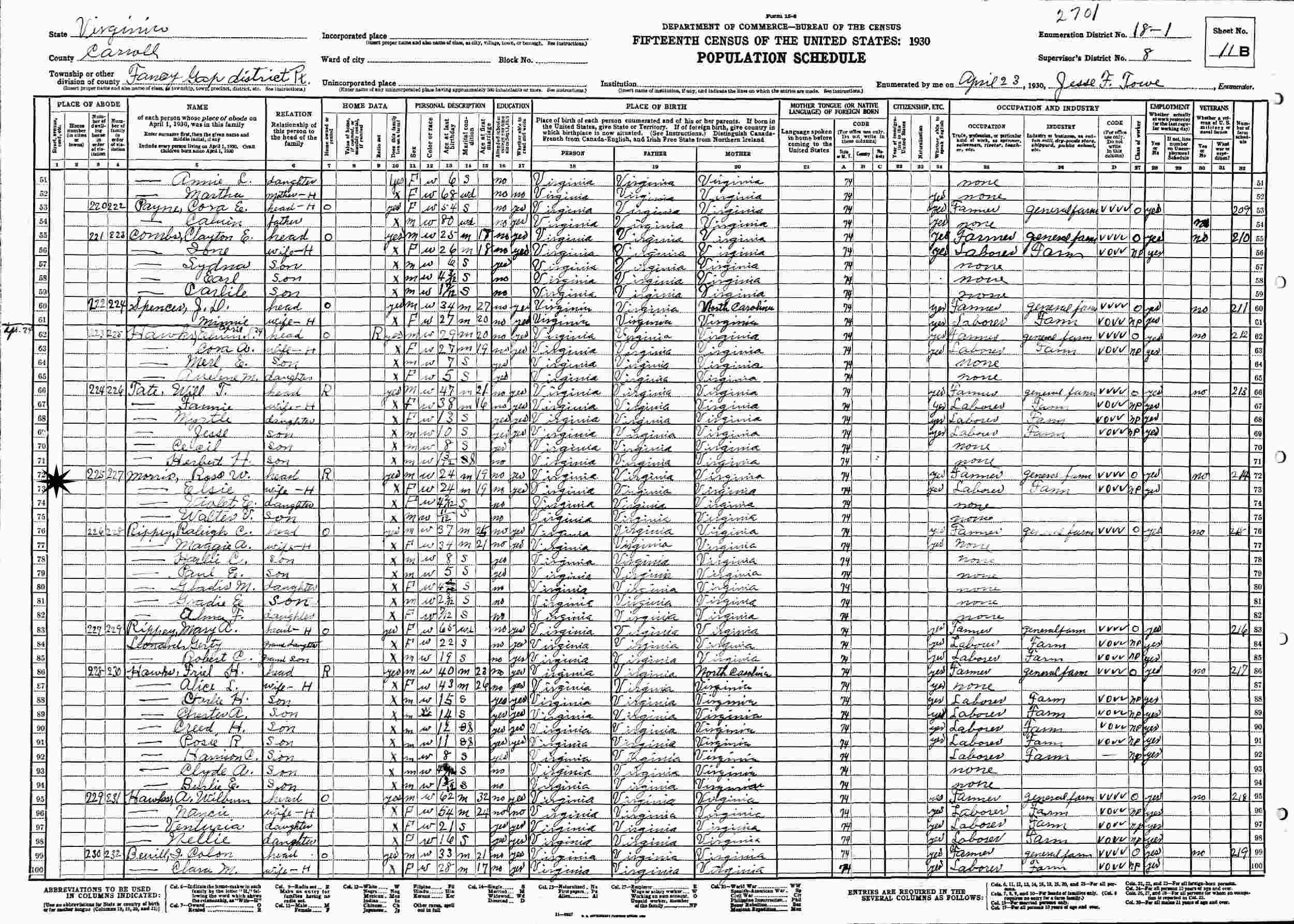 April 23, 1930 - Supervisor's District 8, Enumeration District 18-1, Fancy Gap District, Carroll County, Virginia.