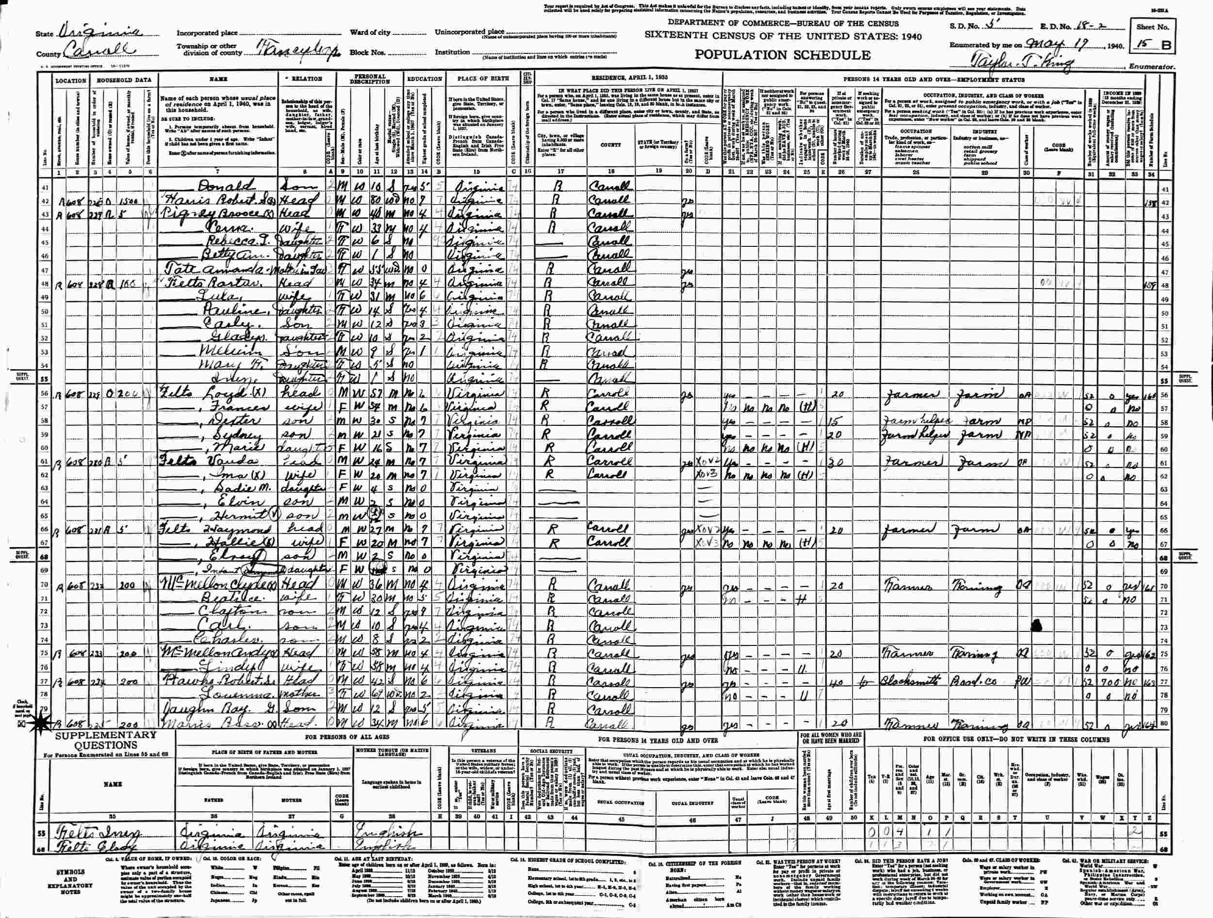 May 19, 1940 - Supervisor's District 5, Enumeration District 18-2, Fancy Gap District, Carroll County, Virginia.