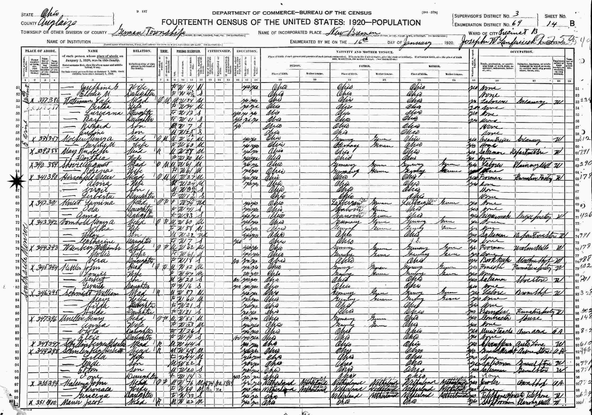 January 16, 1920 - Precinct B, Supervisor's District 3, Enumeration District 69, Southside Monroe, German Township, New Bremen, Auglaize County, Ohio.