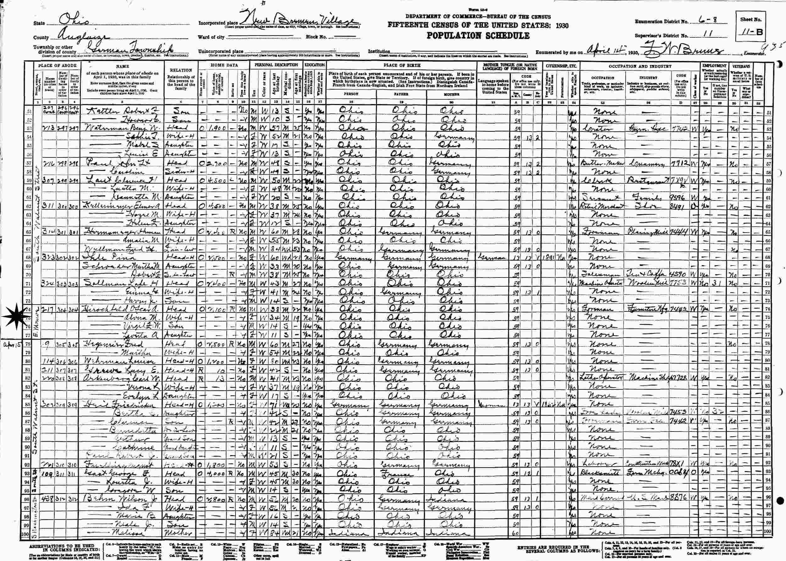 April 14, 1930 - 217 South Walnut Street, Supervisor's District 11, Enumeration District 6-8, German Township, New Bremen Village, Auglaize County, Ohio.