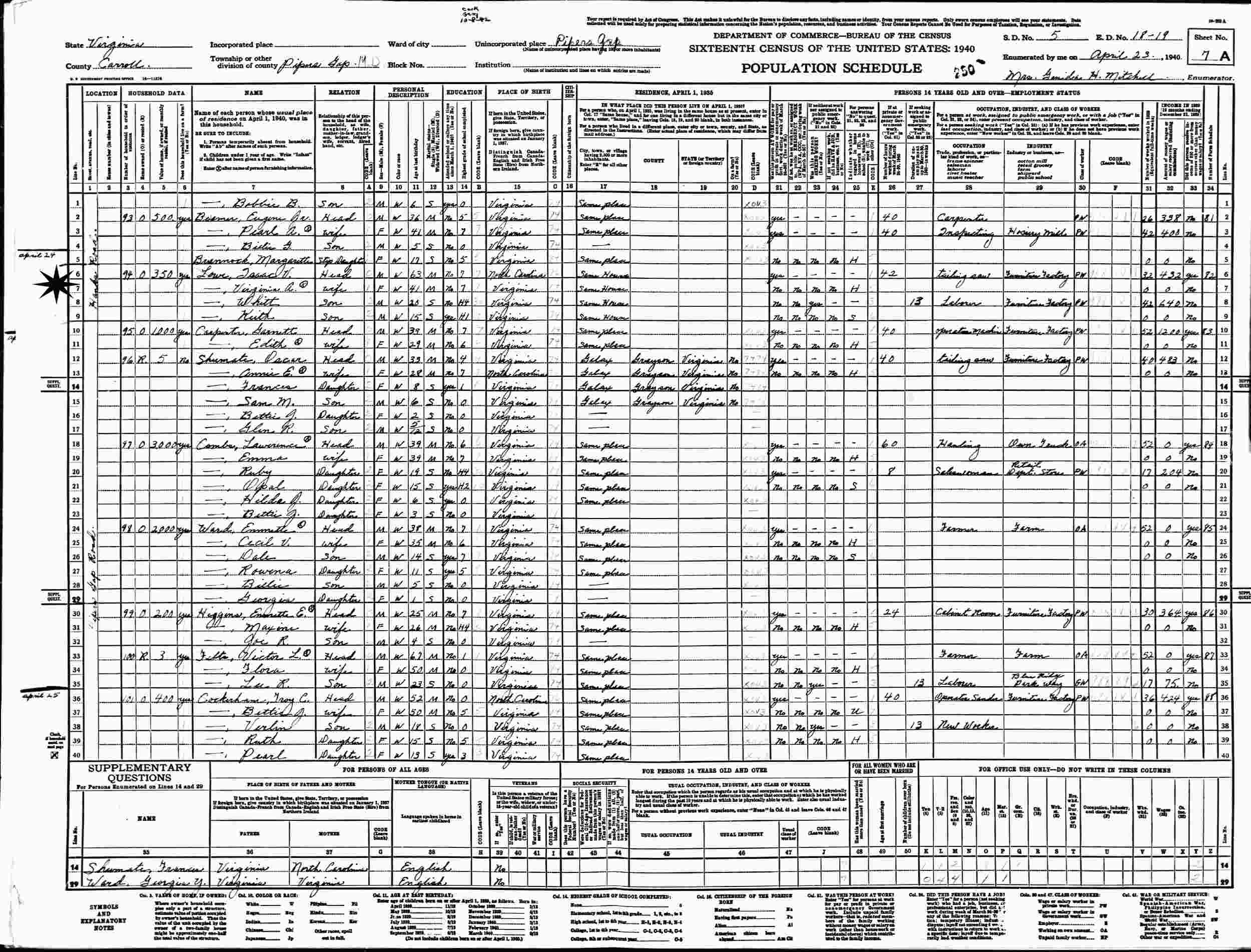 April 24, 1940 - Hanks Road, Supervisor's District 5, Enumeration District 18-19, Pipers Gap Magisterial District, Carroll County, Virginia.
