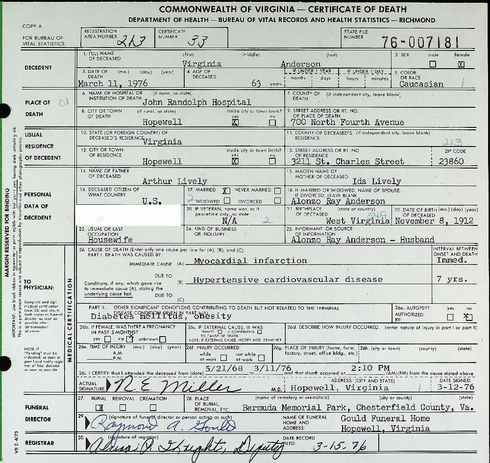 Died: March 11, 1976 in Hopwell, Virginia.