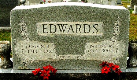 Married: (1) Calvin R Edwards Before 1937. (He was born April 28, 1914, Virginia and died June 13, 1961 in Winston-Salem, Forsyth County, North Carolina; buried: Oakland United Methodist Church Cemetery, Carroll County, Virginia.)