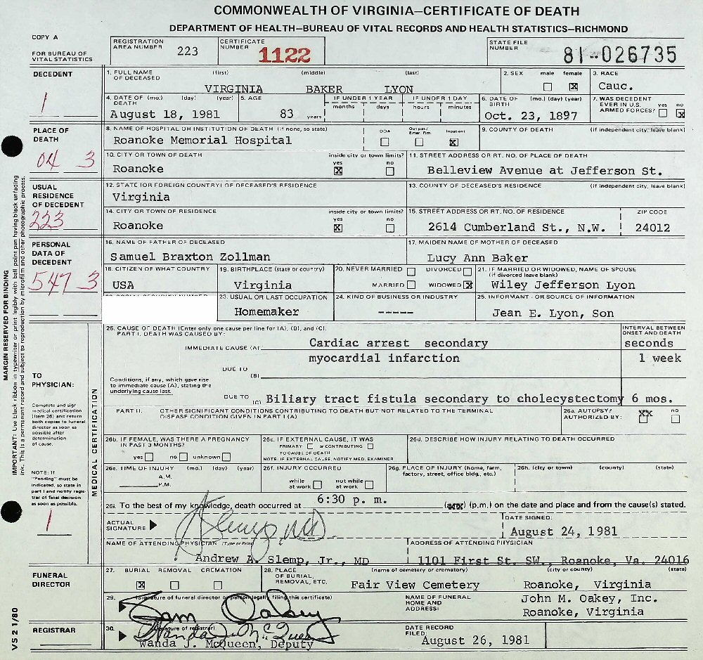 Buried: Fairview Cemetery, Roanoke, Virginia.