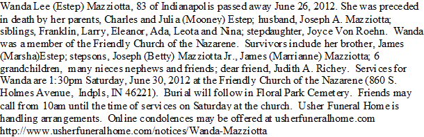 Notes for WANDA LEE ESTEP MAZZIOTTA: