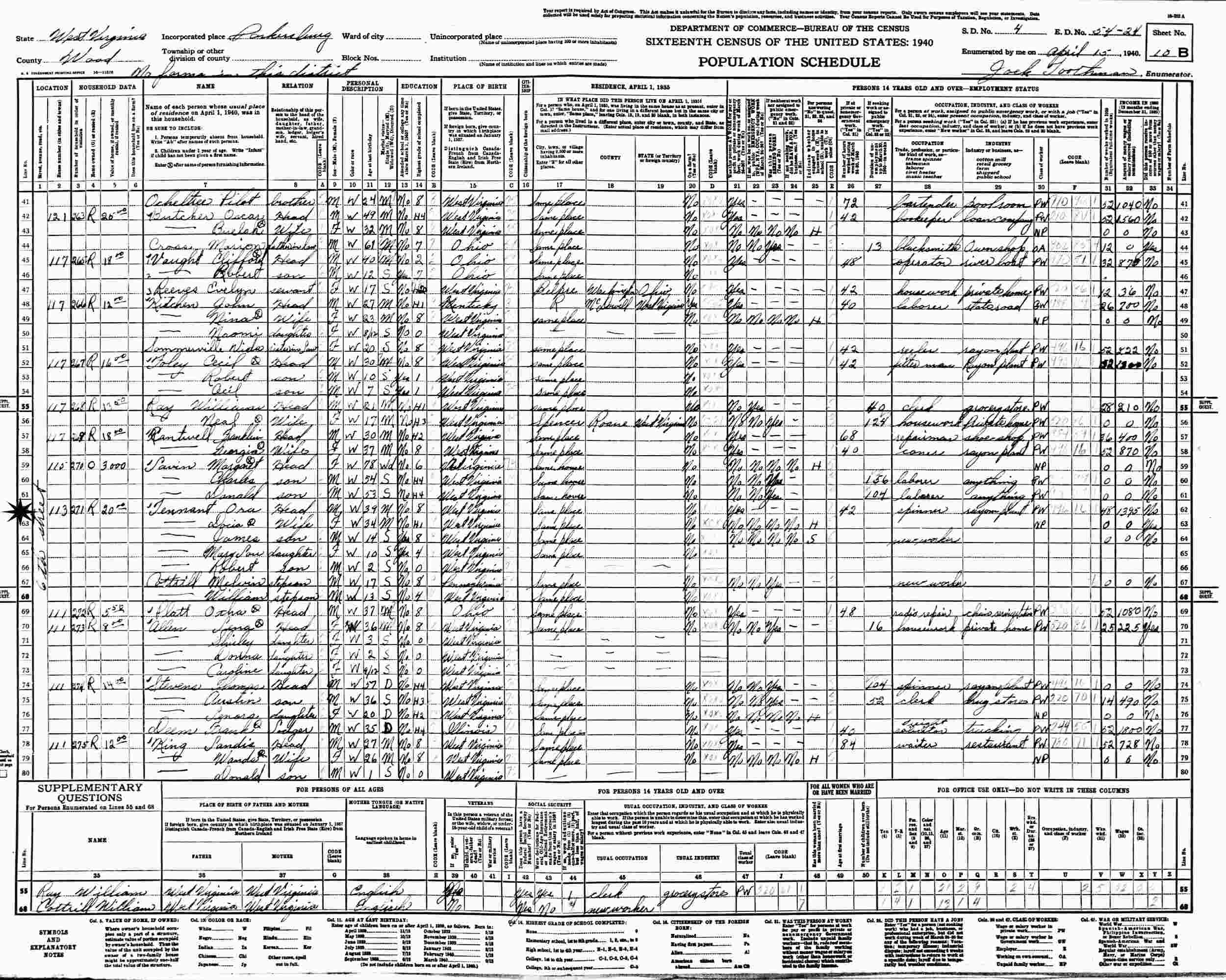 April 15, 1940 - 113 6th Street, Supervisor's District 4, Enumeration District 54-24, Parkersburg, Wood County, West Virginia.
