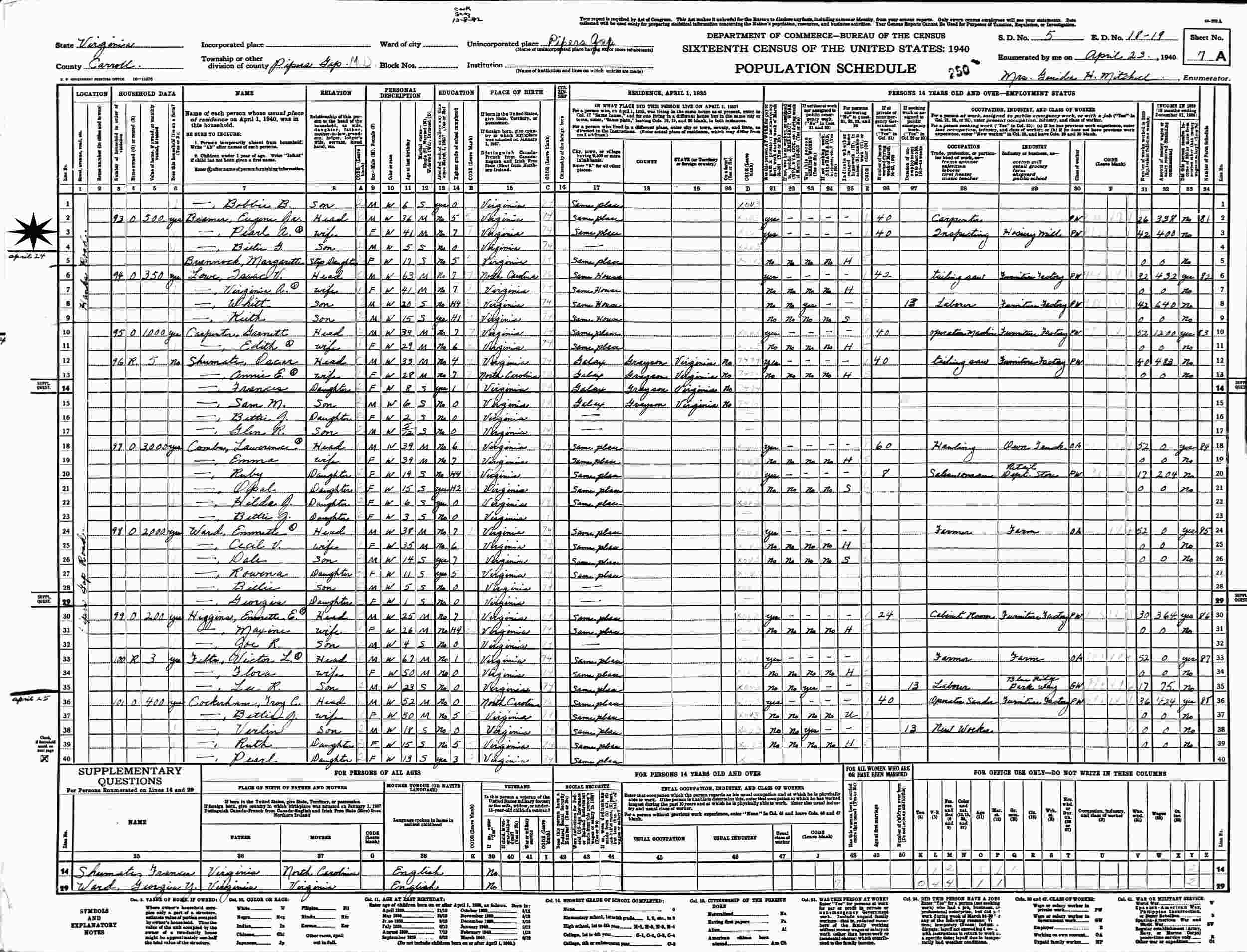 Born: April 6, 1935 in Pipers Gap, Carroll County, Virginia.