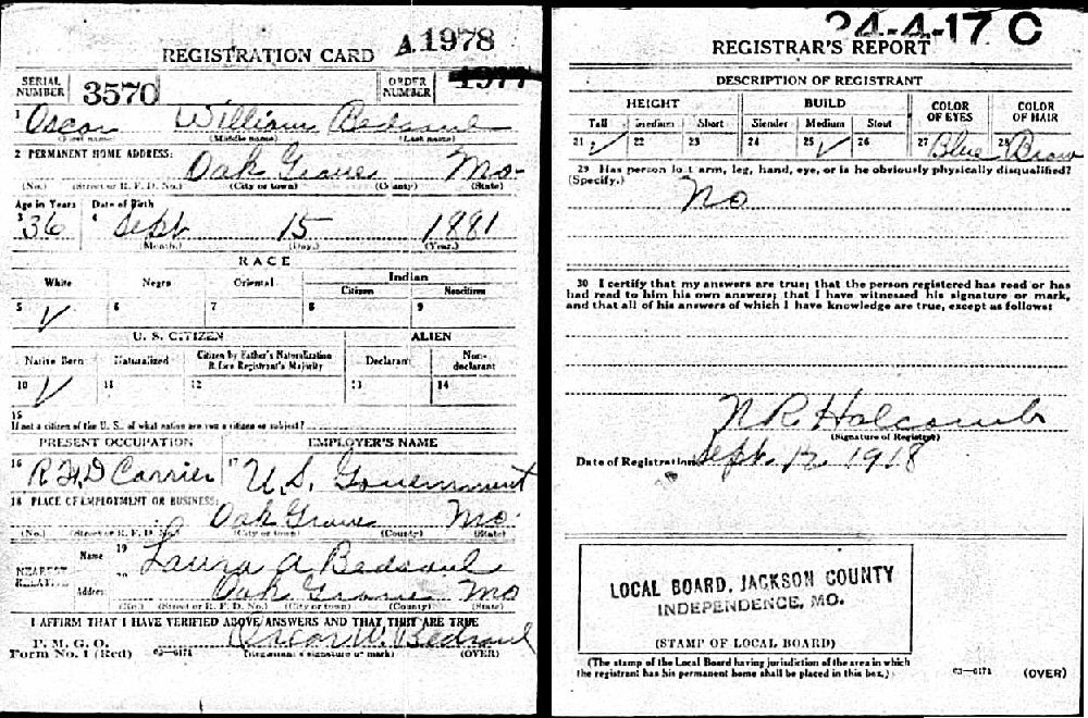 Notes for WILLIAM OSCAR BEDSAUL: