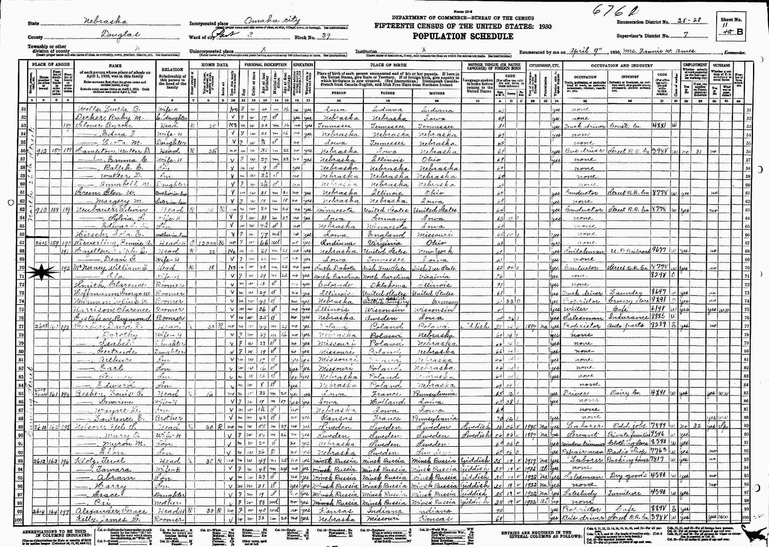 April 9, 1930 - 2602 Cuming Street, Ward 3, Block 39, Supervisor's District 7, Enumeration District 28-28, Omaha, Douglas County, Nebraska.