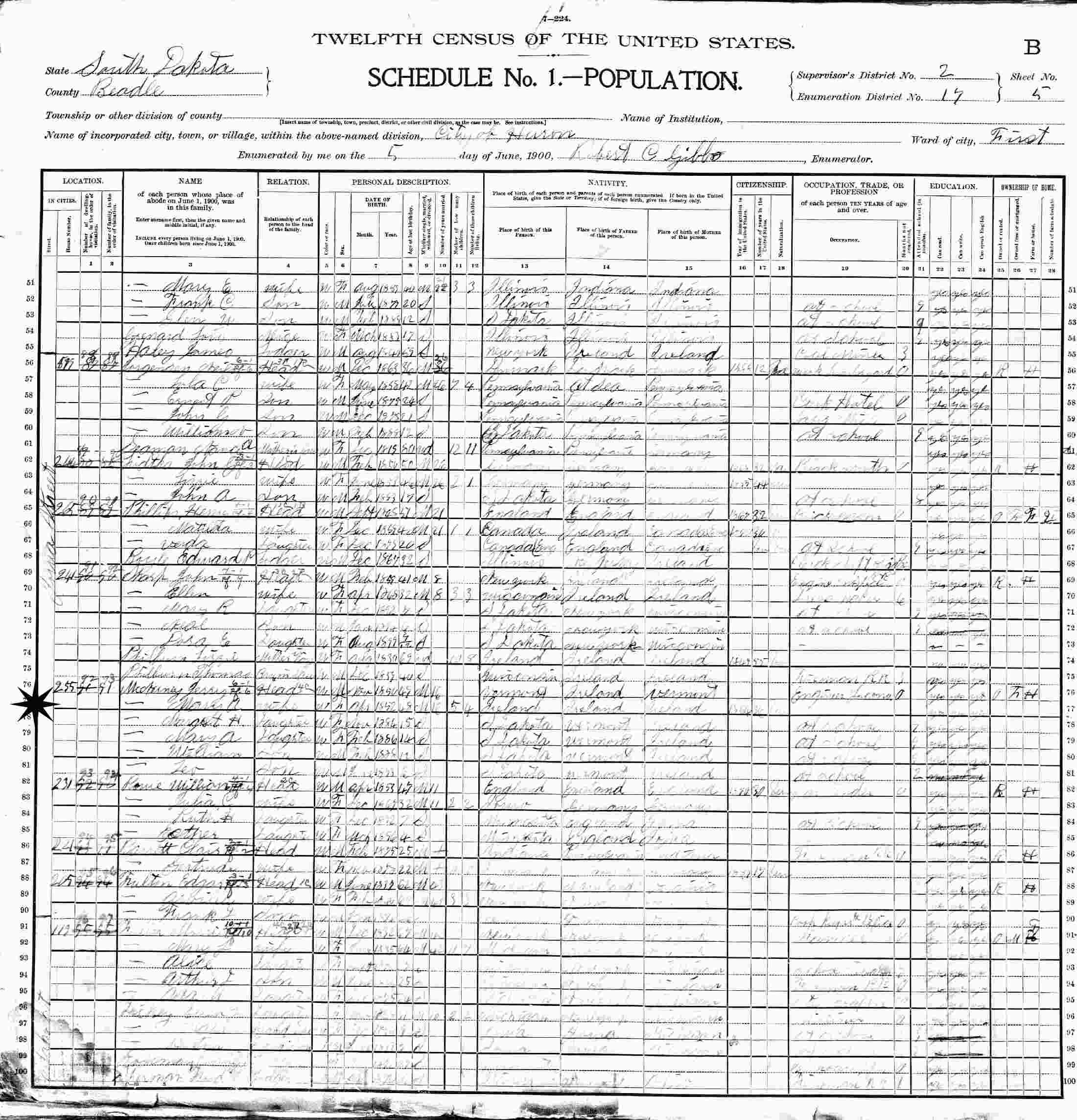 June 5, 1900 - Huron, Supervisor's District 2, Enumeration District 17, Beadle County, South Dakota.