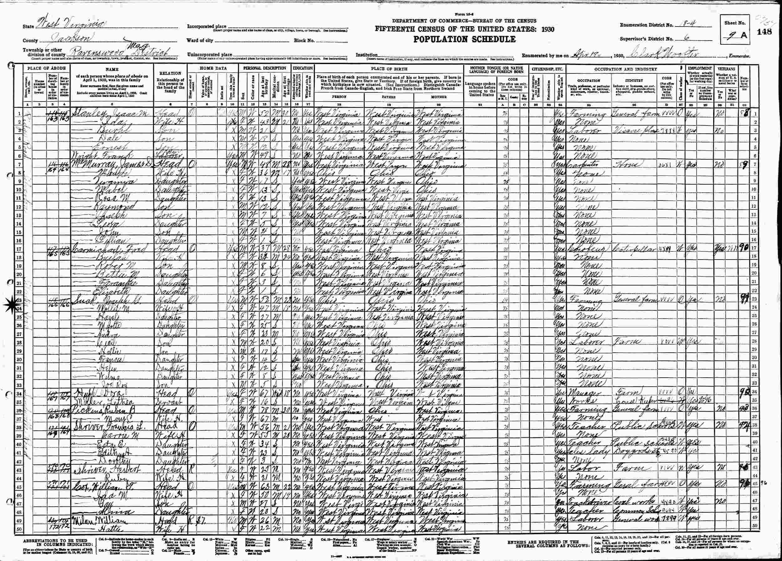 April 18, 1930 - Silverton Road, Supervisor's District 6, Enumeration District 18-4, Ravenswood Magisterial District, Jackson County, West Virginia.