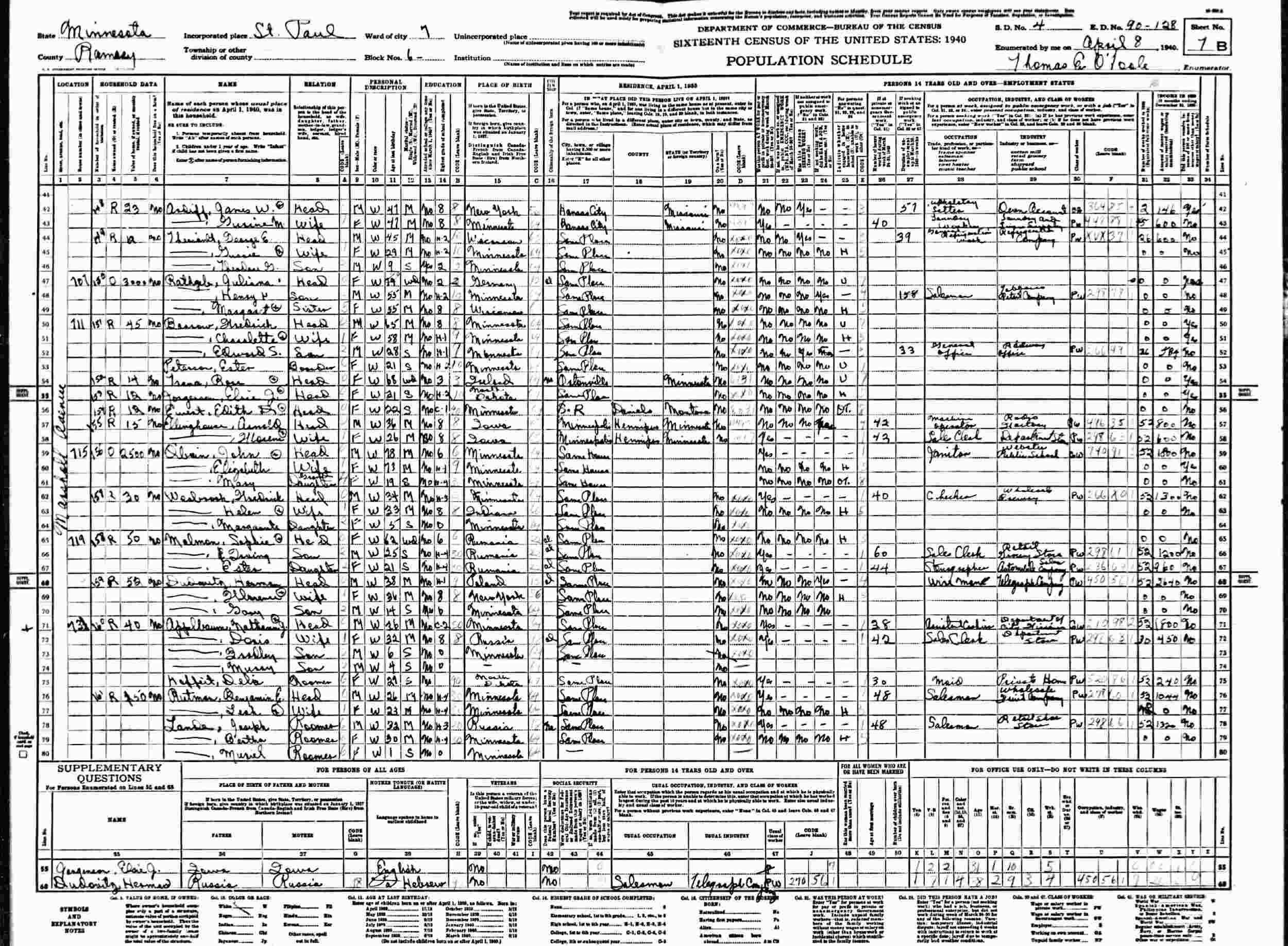 April 8, 1940 - 719 Marshall Avenue, Ward 7, Block 6, Supervisor's District 4, Enumeration District 90-128, St. Paul, Ramsey County, Minnesota.