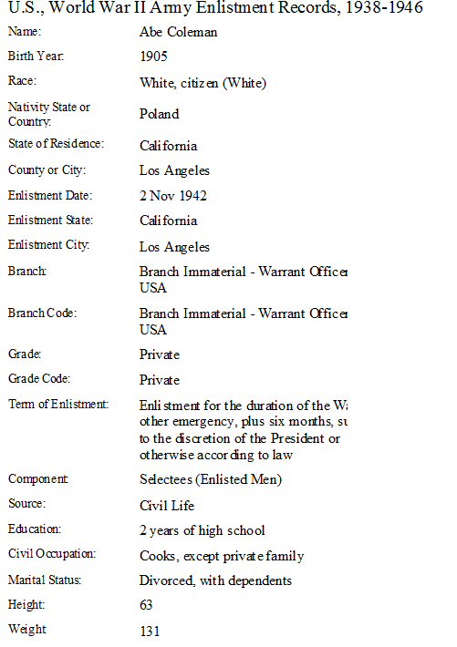 Military Enlistment Date: November 2, 1942 in Los Angeles, Los Angeles County, California.