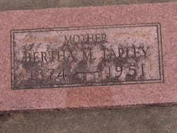 From the US Census records, we see that she lived with her parents in Chariton, MO in 1874 and Douglas, Jackson Co, KS in 1880. She married William Gouin Tapley in Joplin, MO on 3 Jan 1896. After that we find Bertha and William in Dade Co, MO in 1900, in Okemah, OK in 1910 and 1920. Her husband, William Tapley, passed away in 1929. In 1930, Bertha moved to her mom's house in Blackwell, OK and shortly afterward, her mom (Matilda Belle Meserve Kier) died that year of 1930. She stayed there with her brother William V Kier for some time.