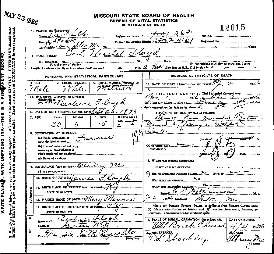Born: September 26, 1895 in Gentry, Gentry County, Missouri.