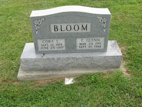 Cora Lucille Emery was the daughter of William Gaddis Emery and Frances Jane Kier. She was born 12 Sep 1913 in Concord Township, Highland County, Ohio. Cora spent her teen years living in Van Nuys, California with her sister Clarice. When she returned to Highland County, Ohio, Cora met and married Glenn Bloom, 29 Nov 1933. During her life Cora was very active in the activities of the local community. She was always there to raise funds for the PTA and her church. Cora spent boundless hours raising her family and performing her chores as a farmers wife. She died at her home in Sugar Tree Ridge, Concord Township, Highland County, Ohio. Cora is buried beside Glenn in the Sugar Tree Ridge Cemetery.
