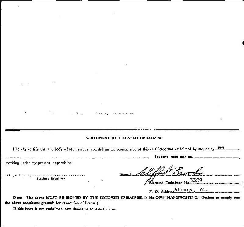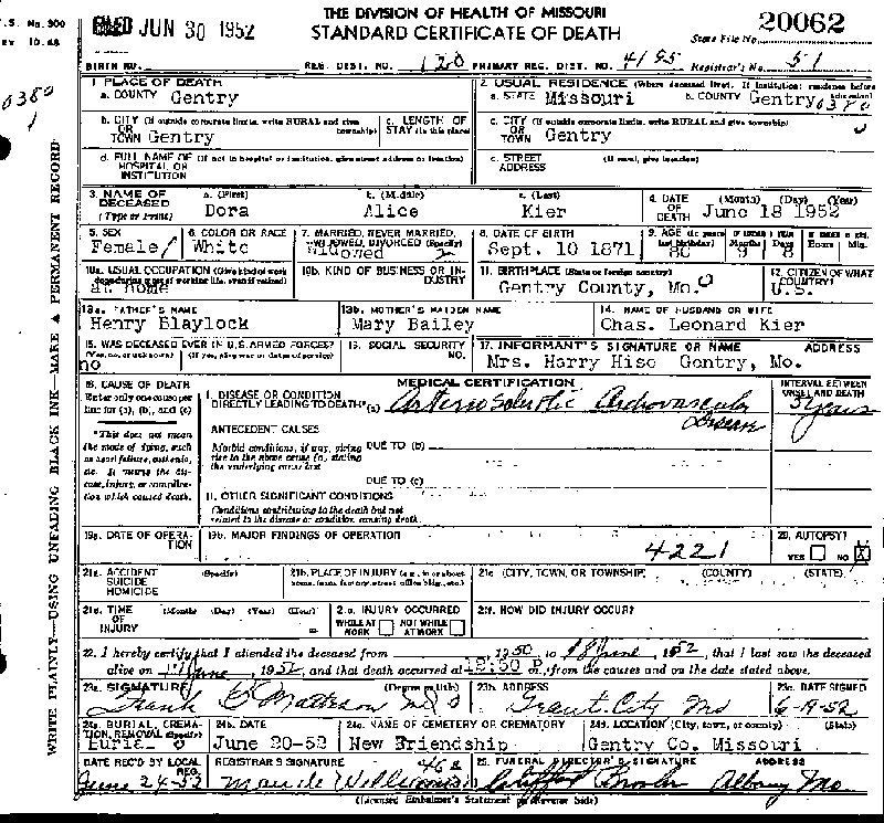 Buried: June 20, 1952 in New Friendship Cemetery, Gentry, Gentry County, Missouri.
