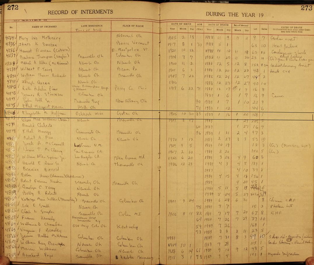 Buried: January 20, 1989 - Maple Grove Cemetery, Granville, Licking County, Ohio.