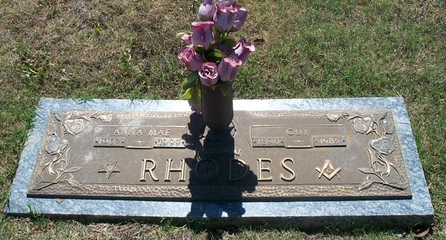 Notes for GUY RHODES: Son of ? and ?. Born: 1890 in Unknown. Died: 1985 in Unknown. Buried: Rest Heaven Memorial Gardens, Seminole, Seminole County, Oklahoma. Married: Anna Mae (nee Tapley) Plank in 1953 in Unknown.