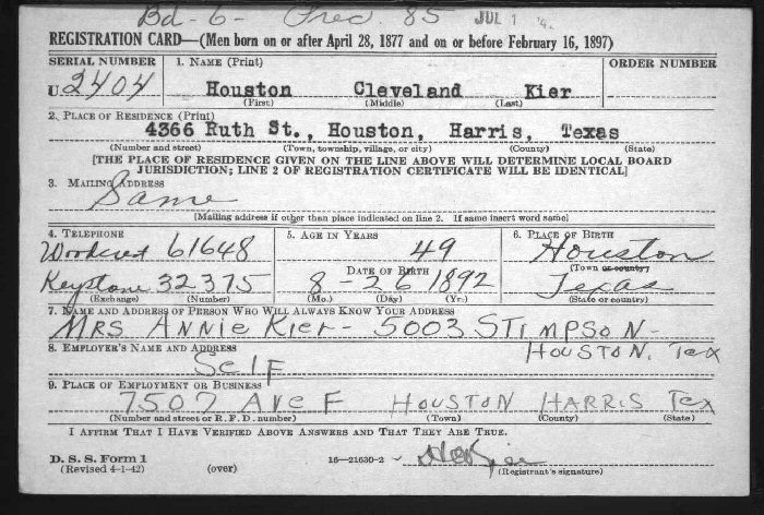 Notes for HOUSTON CLEVELAND KIER, SR.: