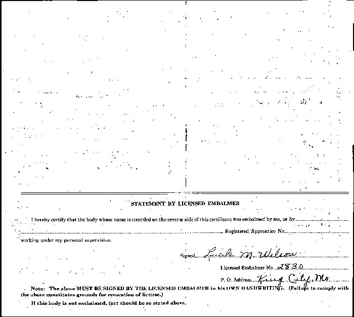 Buried: January 22, 1944 in King City, Gentry County, Missouri.
