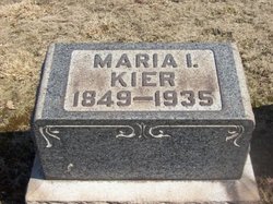 Notes for MARIA I ? KIER: Daughter of ? and ?. Born: 1848 in Unknown. Died: 1935 in Unknown. Buried: A 46; Prospect Cemetery, Brackenridge, Allegheny County, Pennsylvania Married: Samuel C Kier Unknown in Unknown.