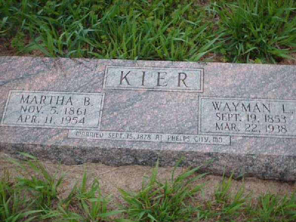 Married: Wayman Linic Kier September 15, 1878 in Phelps City, Atchison County, Missouri.