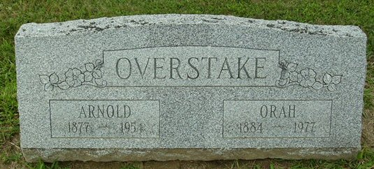 Married: (1) Arnold Overstake January 18, 1908 in Brown County, Ohio.