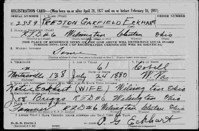 Residence: 1942 - Wilmington, Clinton County, Ohio.