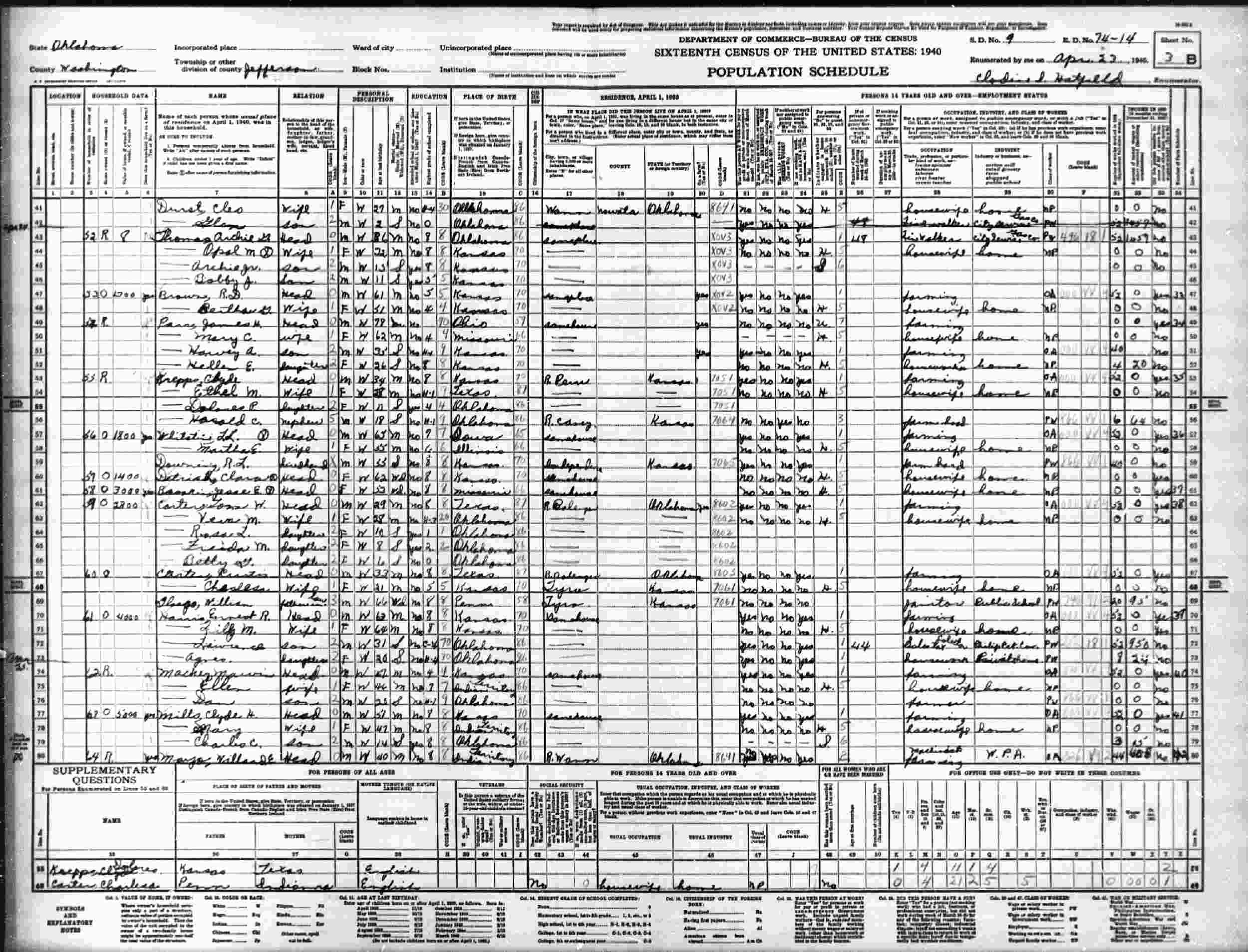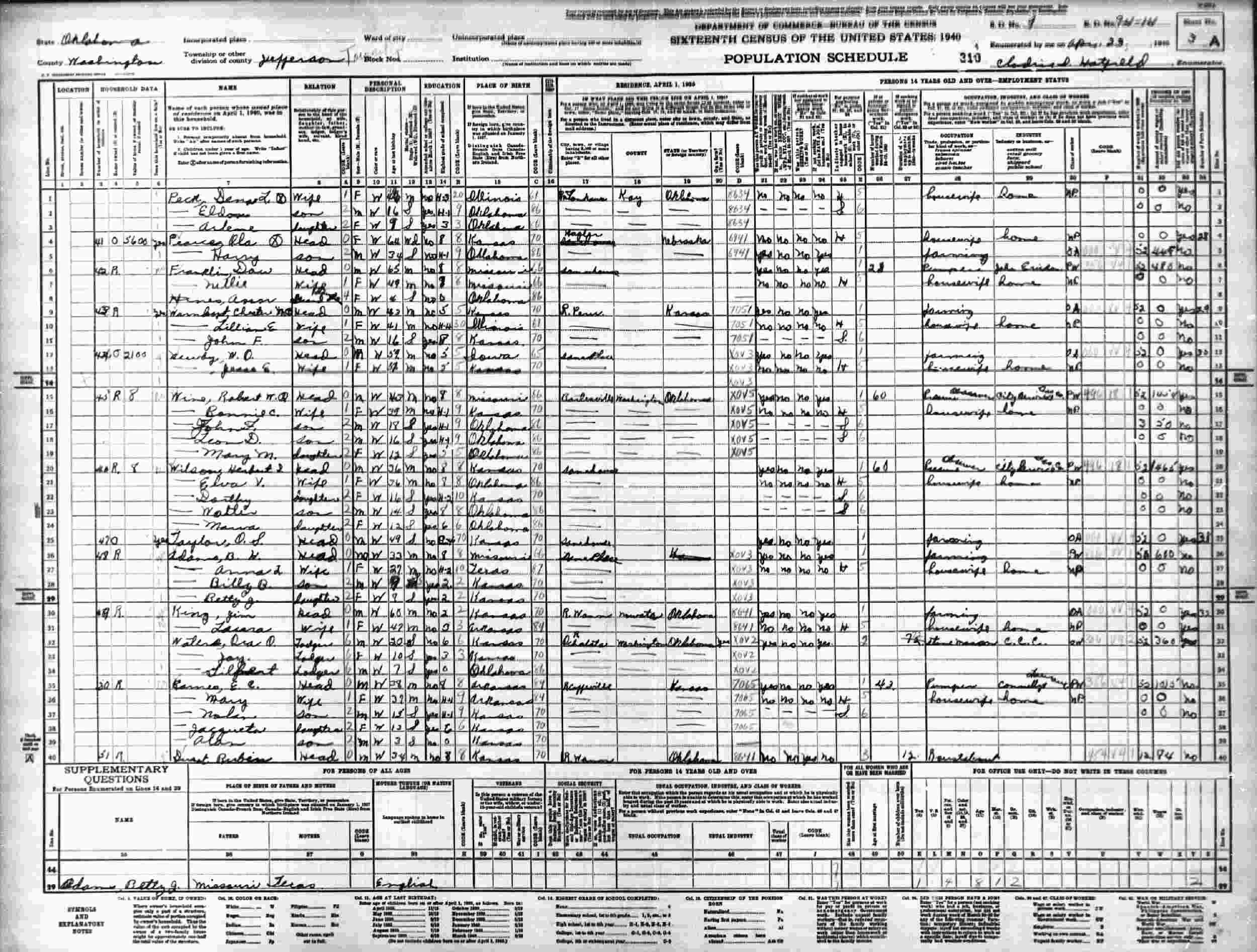 April 24, 1940 - Jefferson Township, Washington County, Oklahoma.