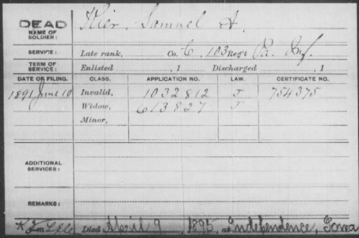 Died: April 9, 1895 in Independence, Buchanan County, Iowa.