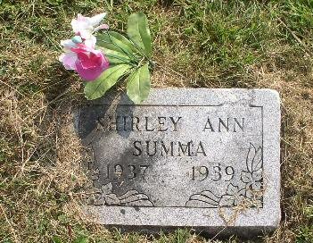Notes for SHIRLEY ANN SUMMA: Daughter of Herbert B and Eloda M (Lewis) Summa. Born: September 9, 1937 in Unknown. Died: June 21, 1939 in Unknown. Buried: Carmack Cemetery, Carmack, Gentry County, Missouri.