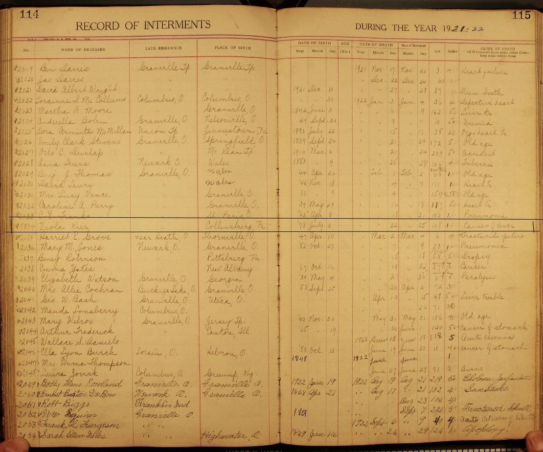 Buried: February 25, 1922 - Maple Grove Cemetery, Granville, Licking County, Ohio.